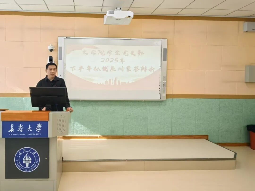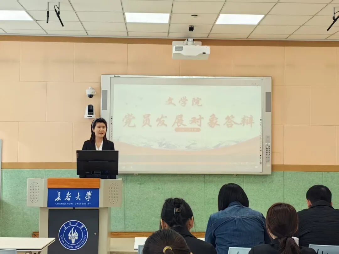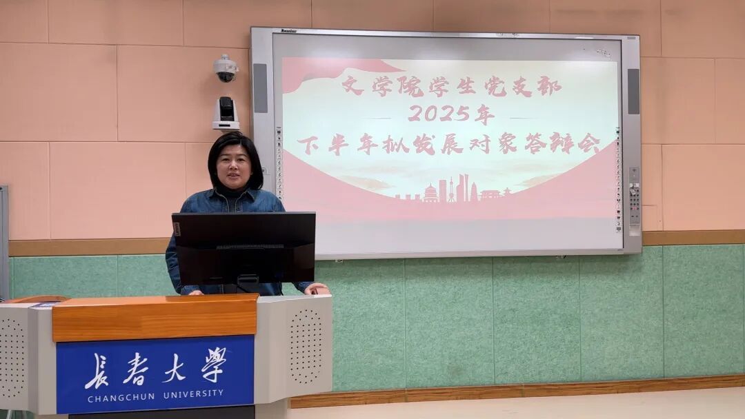 11月4日上午10:00,文学院学生党支部在正心楼909举办2025年下半年拟发展对象答辩会。会议由学生党支部书记李洋主持,学院党委副书记王伟、辅导员赵顺平参加答辩会。
