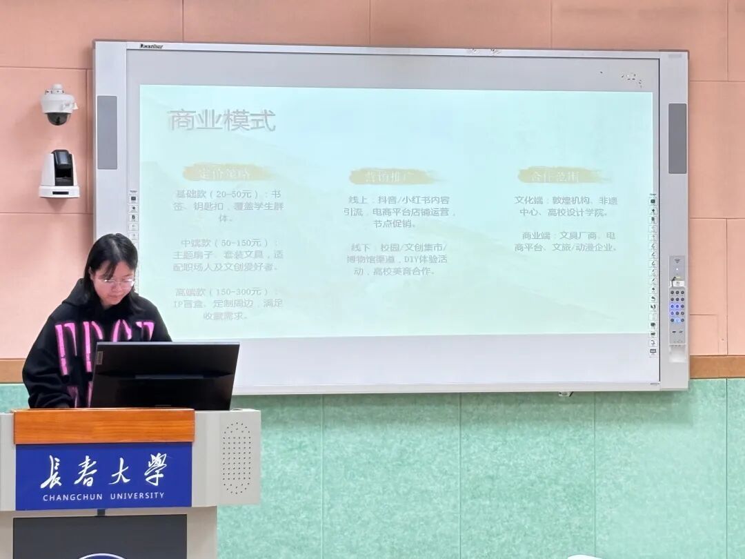 七组参赛团队依次进行项目展示,全面且细致地阐述了项目的核心思路、实施路径与特色亮点。评委老师围绕作品的创新价值、技术壁垒、商业转化潜力等维度展开综合评审,结合各团队的现场展示效果、项目完成质量及长远发展前景进行精准点评,提出了具有针对性的优化建议,并依据最终得分择优推选优秀项目晋级校赛。